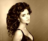Healthy hair. Beautiful brunette girl model with long curly hair