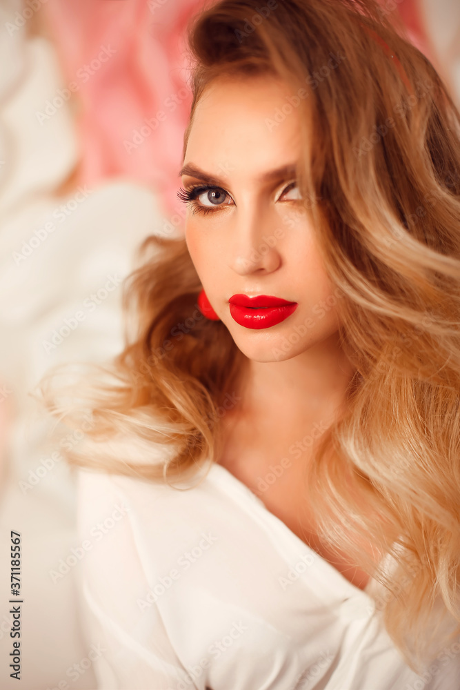 Beauty fashion portrait. Beautiful woman with dark lips makeup a