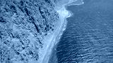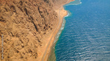 Beautiful ocean meeting Saudi Arabia shore near rocky mountains - high shot