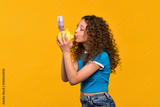 Girl playfully kissing a piggy bank, symbolizing love for saving and financial awareness. Financial Literacy and Conservative Savings Concept for Children and Teens