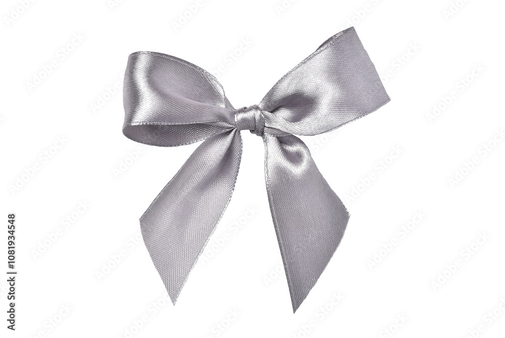 Beautiful silver gift bow isolated on transparent background