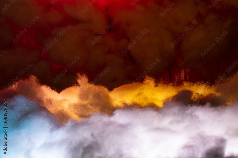 Fantasy cloud float in sky. Fake cloud many layers reflect colorful of red blue yellow like a dream