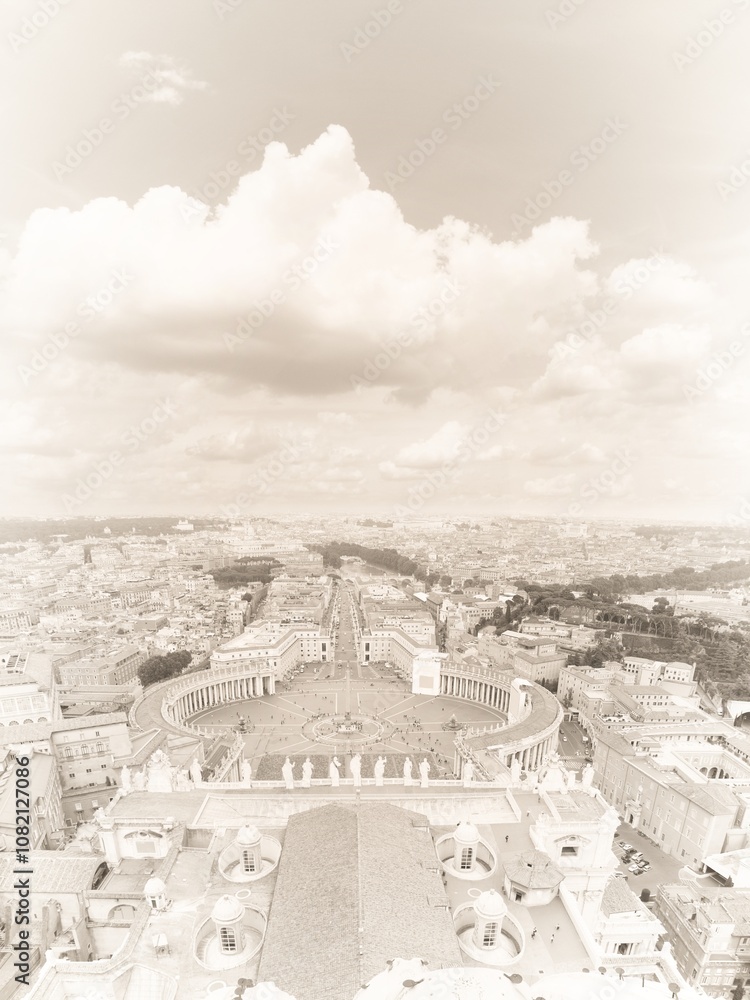 Rome - Saint Peter's Square. Faded paper photo print vintage style.