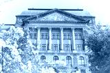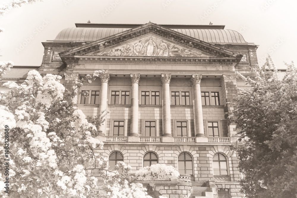 Dresden governmental building. Faded paper photo print retro style.