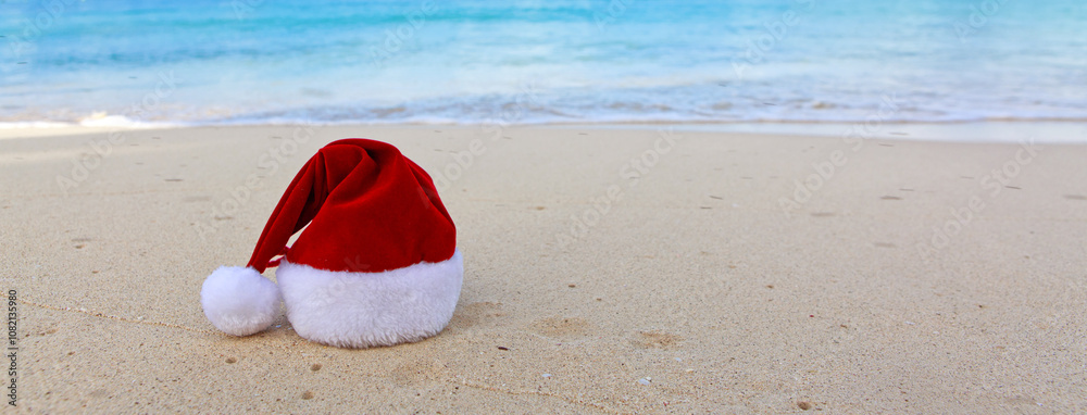 Merry Christmas with Santa hat on the tropical beach