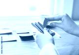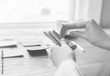 Person organizing things at a desk