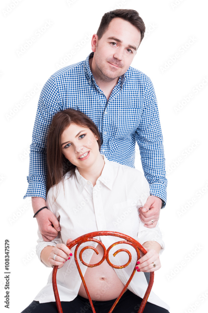 Portrait of young pregnant woman with husband behind her back