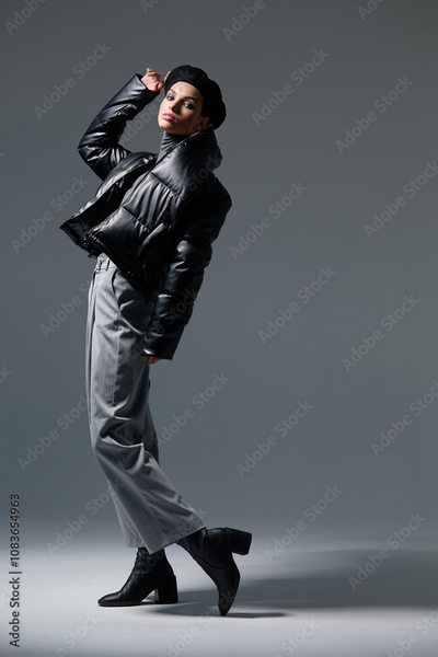 High fashion woman in trendy outfit.