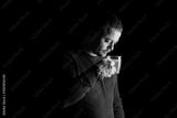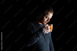 Contemplative Man Holding a Cup in Low Light