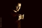 Introspective Man Posing with a Glass of Tea in Dim Lighting