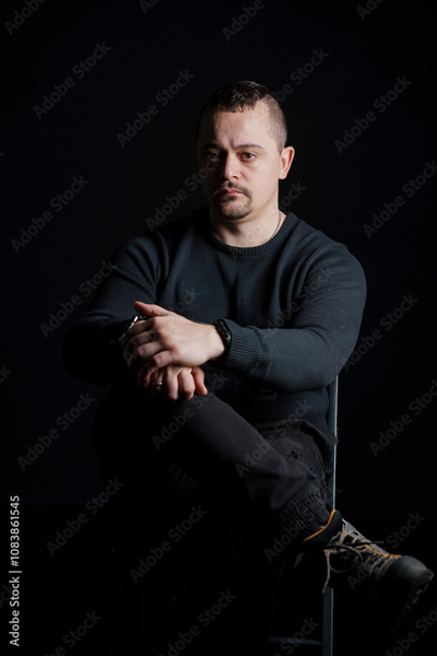 Introspective Portrait of a Man in a Dark Setting