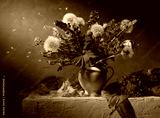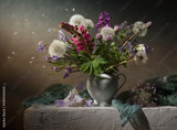 Still life with a bouquet of wild flowers on a dark background