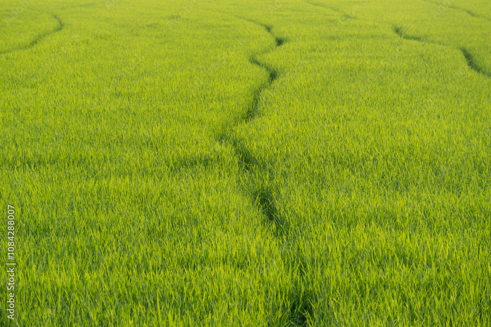 Growing rice field patterns rural landscape nature photography vibrant green environment aerial view agriculture concept