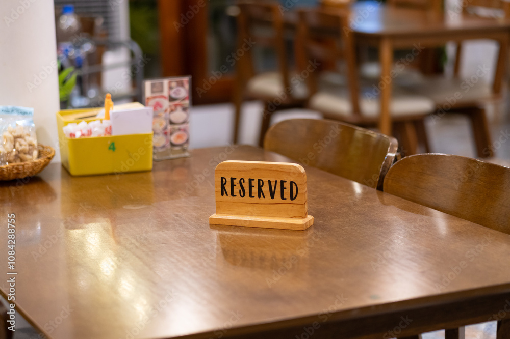 Reserved table sign cozy café interior photography warm atmosphere close-up view dining experience