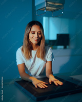 Patient Positioning her Hands for Radiology Examination. Woman person being checked for trauma or other bone diseases