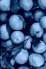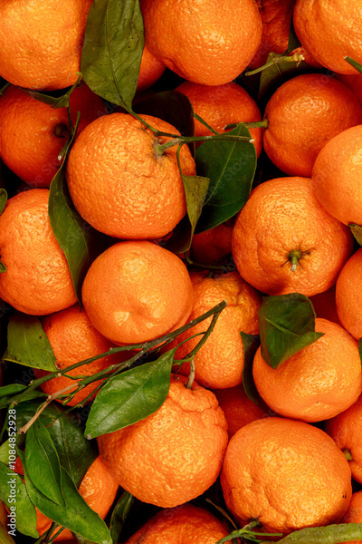 Fresh harvest of mandarin, tangerine with green leaves.