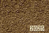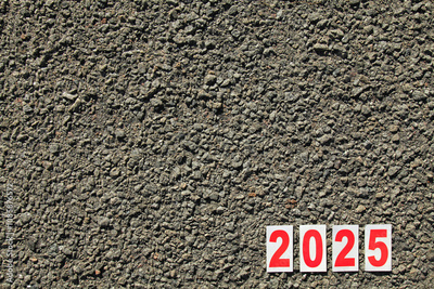 Numbers of 2025 year. Paper square numbers on the stone road background, that means coming New Year Eve. Christmas, holidays, celebration concept. New Year of 2025, year of green wooden snake