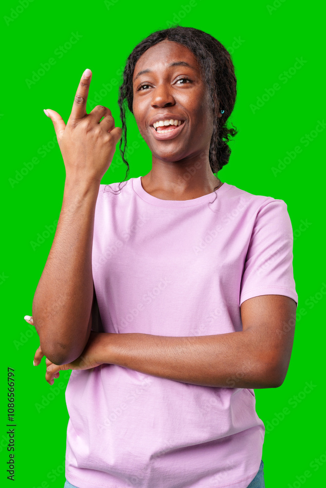 Thoughtful woman pondering in front of a bright green background during a casual moment