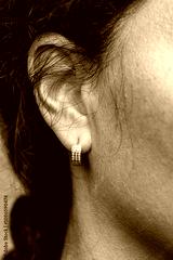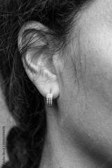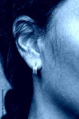 view of a woman wearing elegant diamond earrings
