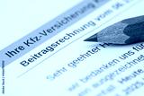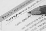 Auf der Beitragsrechnung für Kfz-Versicherung liegt ein Rotstift