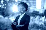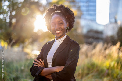 Portrait of a smiling young woman in the city