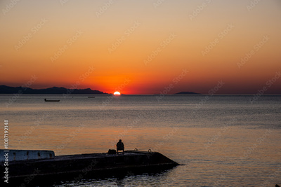 Sunrise over the sea in the early morning.