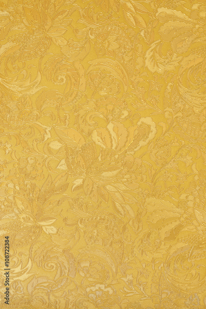 Golden floral ornament brocade textile pattern