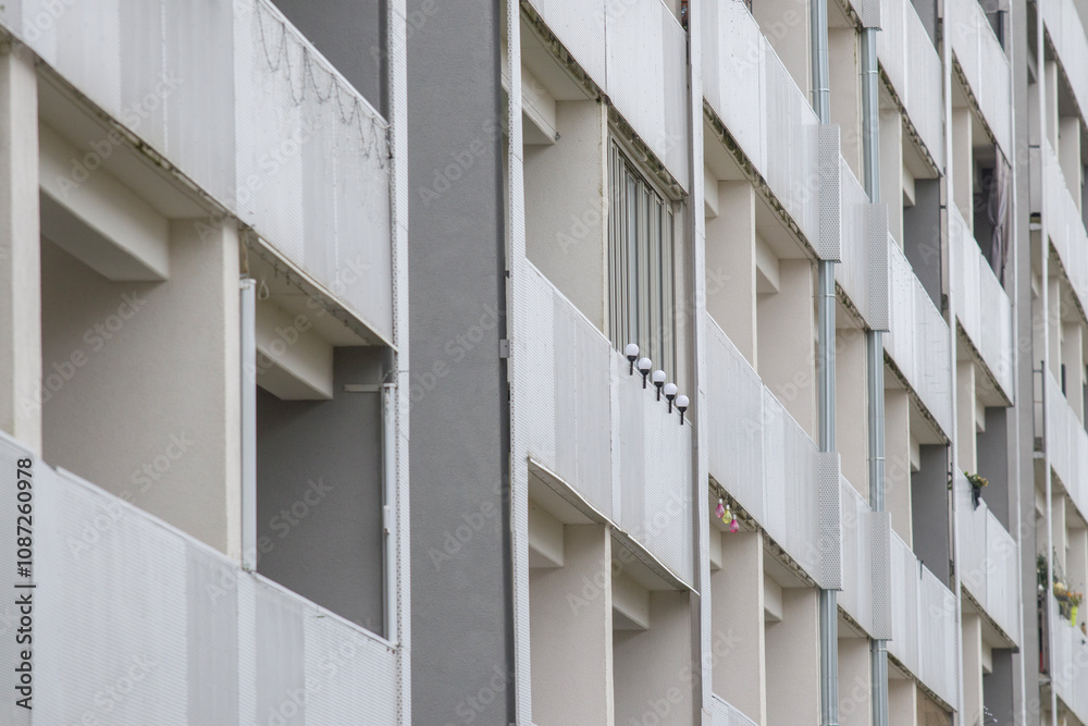 Multi-family apartment block with lots of windows