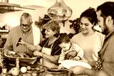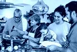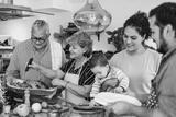 Latin family cooking together for Christmas dinner at home in Mexico Latin America, hispanic mother, grandparents and daughter preparing turkey meat in holidays