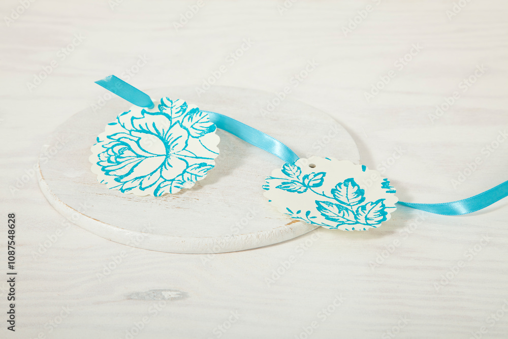 Geschenkeanhänger / Label / Sticker in Cyan Hellbau mit Geschenkband