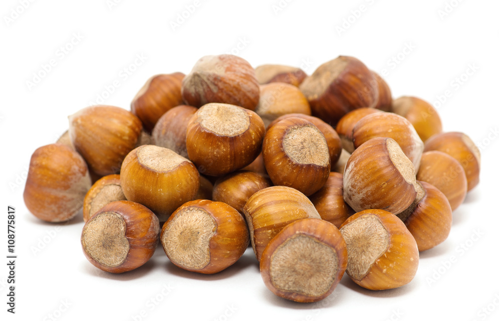 Hazelnuts on white background