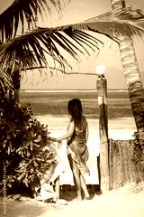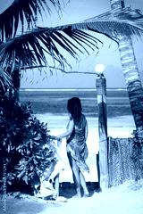 Portrait of young woman wearing a blue sarong and bikini on the