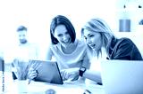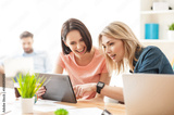 Cute young female workers are resting in office