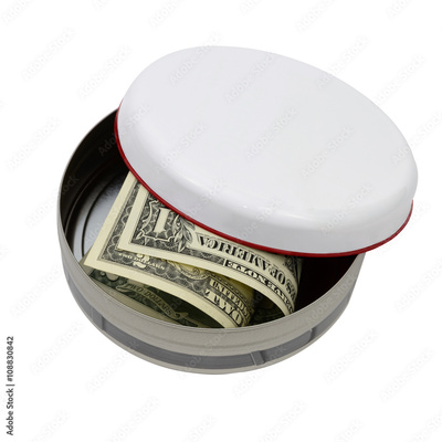 money in round tin isolated