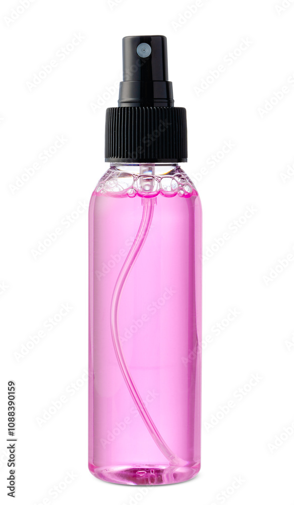 Clear plastic bottle filled with liquid, commonly used for skincare products