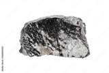 Closeup natural rough elite Shungite stone on white background. Earth minerals contain high specifically carbon (fullerenes) atom. (selective focus, shallow DOF)