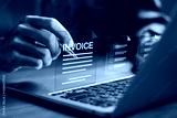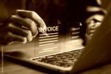 E-invoice and online digital statements concept, Businessman use computer laptop with invoice document on virtual screen.