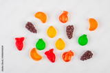 Assorted gummy candies, Juicy colorful jelly sweets. Gummy candies on white background