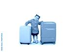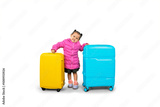 Happy Toddler with Bright Suitcases Ready for Travel Adventure