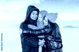 Happy Family Embracing Outdoors in Winter Snow