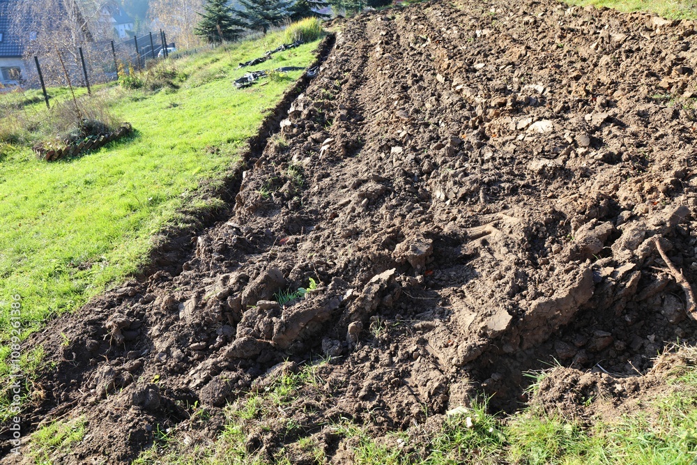 Plowed field in autumn in rural Poland