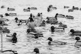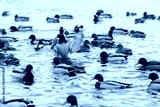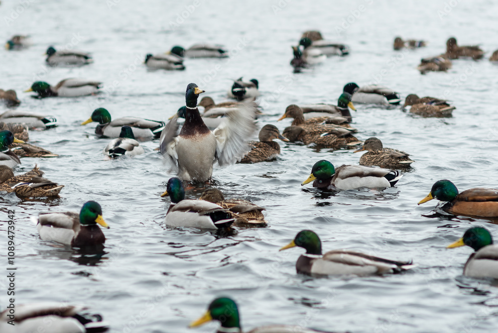 Ducks in the lake in winter in cold water