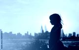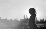 little girl looking at sunset city