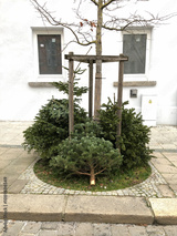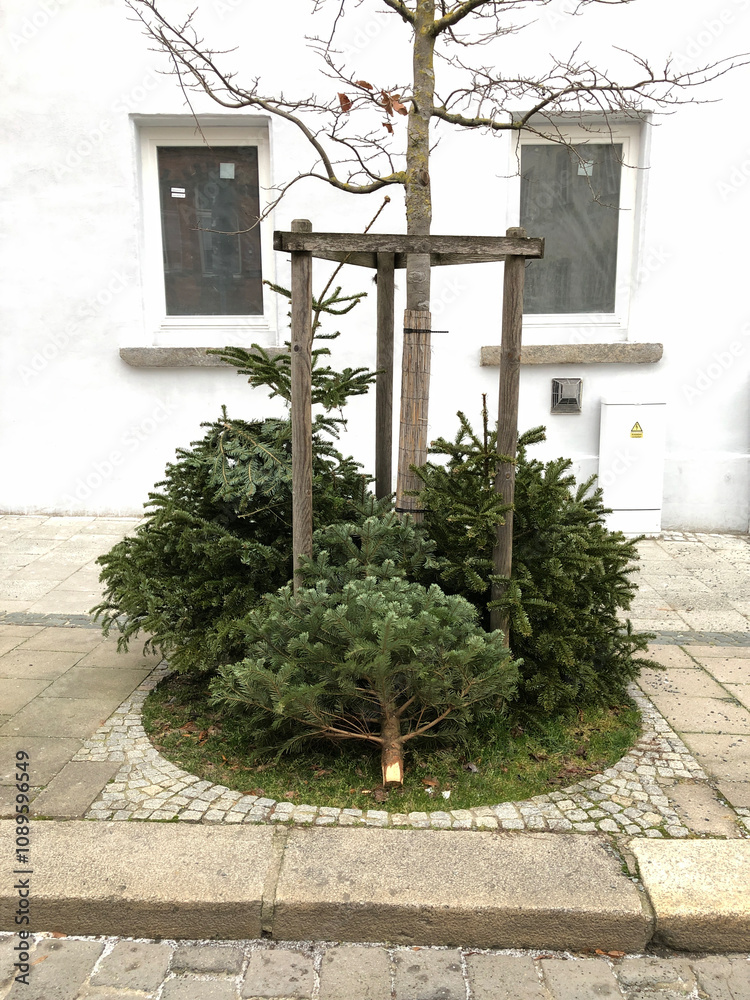 Alte Weihnachsbäume schmucklos Straßenrand Baumsammlung