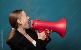 young blonde woman with a megaphone