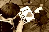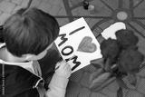 7 year old boy paints greeting card for Mom