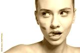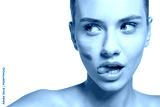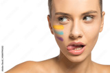 Beautiful young sensual woman posing with different tones of eyeshadows on her face.