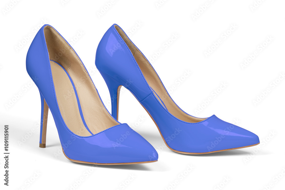 A pair of blue high heel shoes isolated on white with clipping path.