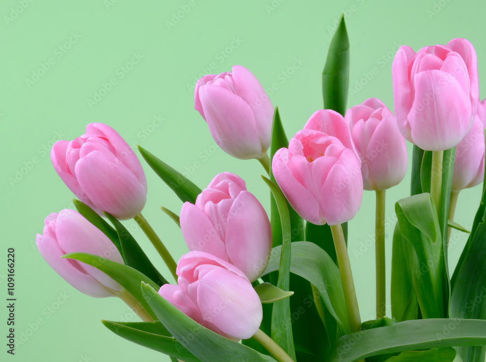 Pink fresh tulips flowers background