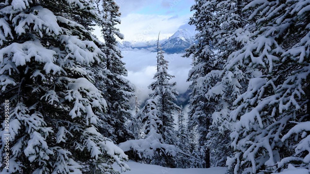 winter in the mountains, Snow covered in mountains, Canadian Rockies, Winter